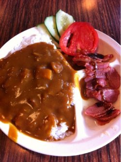 星期六值班来吃晚饭 公司附近楼下的店 经常吃啊 这家也算坚持下来了 海上海可是餐饮杀手啊最近有吃辛辣培根意面 点单的时候说很辣 小惊讶下意面很辣 也不多吧 那就微辣吧一上来 看着还好啊 一吃果然辣 还有很多辣油 味道还不错啦 可是夏天吃感觉有点油腻呀还吃了咖喱饭加熏鸭肉 熏鸭肉味道不错 就是卖相不怎么样最近生意似乎很好 周六好多带孩子的来吃环境似乎比过去好点 油腻味稍微少点了查看更多