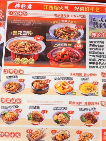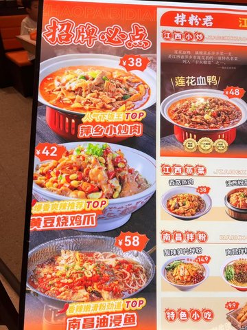 招牌萍鄉小炒肉 / 黃豆燒雞爪 / 酸辣雞雜 / 江西血鴨 / 招牌南昌油浸魚 / 絕殺江西炒粉