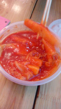 经过这家掌上韩品的时候发现店内装修的很有韩式风味,就很想来尝试看看里面的辣年糕,和朋友除了点了一份辣年糕之外还另外点了一份韩式鱼饼汤,坐在木制的桌椅上感觉还不错,辣年糕里面的酱汁颜色红红的,看着就让人食欲大开,年糕吃起来也有点辣,感觉好爽也好过瘾,配的韩式鱼饼汤倒是显得有点一般,不是很喜欢。查看更多