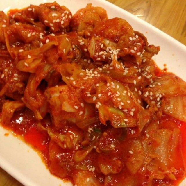 店好小,但是店的颜色布局挺有特色的!墙上不是照片,留言板,就是涂鸦!不过菜不多,都挺简单的,辣酱五花肉看着红红的就非常的诱人哦!炒年糕的话挺辣的!年糕很糯!饮料也都是韩国的饮料,挺好喝的,就是稍微贵了点!