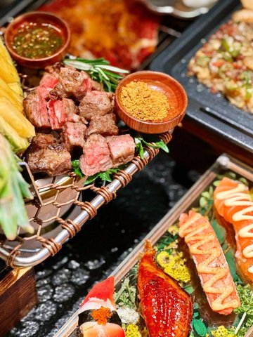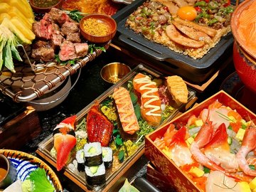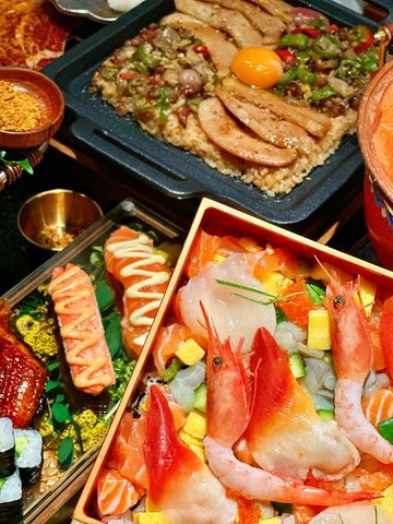 超極彩虹鋪天蓋地火牛壽司 / 明太子烤土豆 / 嘎嘣脆爆汁摩摩炸雞 / 摩匠手作香濃厚豆乳芝士 / 赤焰帝皇蟹腳握壽司 / 肥美三文魚刺身