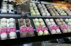一家专做团子的店~哈哈~看着软嘟嘟的就很可爱~橱窗里展示的除了整个团子的样子外~还把每个不同口味的团子来了个剖面图~团子内部大致分3层~最里层是奶油~接着是你自选的口味的馅料~品种很多~有个樱花味的很特别~酸酸甜甜的蛮好吃的~而且颜色粉粉的很惹眼~最外面就是糯米皮了~不过他家的团子如果是放在冰箱里的话会很硬~然后室温放上几分钟~皮子就会变软就能吃了~感觉有点像在变魔术~哈哈~查看更多