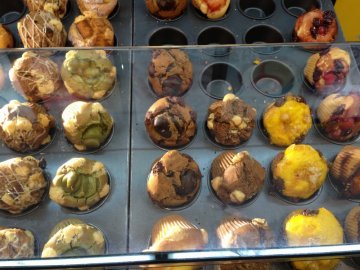 每次路过都被品种好多的各种五彩大福和马芬所吸引,不过实在性价比不高,8-10元一个的大福朋友两口就没了,馅料冰凉倒是蛮好吃,但也没觉得很特别。无非是水果、豆沙、抹茶馅。倒是马芬和其他家不一样,表面上内容很丰富,巧克力的很多大颗布朗尼,果酱的还有水果,抹茶奶油的特别厚。价格跟贝尔多爸爸差不多,10元买个吃半饱了。