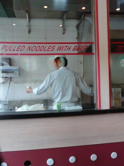 这家店的牛肉拉面是它的特色,所以必点的就是牛肉拉面~他店很有意思,对面的粗细很有讲究~我喜欢细的~所以点了一碗毛细~面条上来,真心细啊,而且根根分明~一口面吃在嘴里,面居然有种入口极化的感觉~但是却并不胡~面的本事也具有它的韧性~这么细的面还是第一次吃到~特别有特色,很不错~它家面的汤底很浓~真的是牛肉汤,很纯很彻很鲜~面上的牛肉味道也很不错~牛肉很嫩,但并不因为在汤中就有点散,肉质仍然紧致~这事一碗能够让人记住的牛肉面~!…查看更多