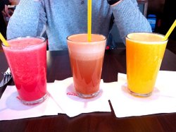 健康聚集地! 魔王1987等級42013-04-2422 瀏覽 關注 他家的布局以及装修让人一进去身心立刻放松了下来~服务员热情、专业。选择吧台等餐,欣赏着各种新鲜的水果被纯熟的放入榨汁机中,像是欣赏蛋糕房里裱花师傅的技艺,百看不厌。我要的红豆果姜味梨汁,老公则是鲜榨橙汁。二者本质的区别是前者加了汇源果汁,而后者只是由2个现切的鲜橙子榨制而成。红豆果姜味梨汁口感有些涩,姜的味道也存在,养生的感觉~橙汁则是完美得好喝到爆!为什么同样的橙子啃着吃相差这么多呢?!一下子神清气爽了起来!不加水不加糖,粒粒分明的果肉混合在天然甜橙制里面,幸福得跳起舞来! 上周去蓝色港湾外带了两杯新元素家的果汁,对橙汁是一往情深念念不忘,于是乎今儿和老公趁着假期最后一天又来了~ 这次是来正经吃饭饭~俩人共点了一份儿童意面两份沙拉三杯饮料共计340元。不得不说花了这么多钱吃了一肚子的草和水果着实有点儿烧包,但的确是想体验一把较为健康、不会有负罪感的一餐。 服务依旧很好~服务员直接写英文下各种菜单令我自惭形愧呀~毫不夸张,一楼除了我和老公这桌,其他每桌都是带着小孩子一起来用餐的!从一定角度也说明了他家的食品令人放心~ 橙汁喝得我不亦乐乎~但西瓜汁和生梨汁差强人意,主要是因为浮沫占据了至少四分之一。32一杯的价格,我只希冀喝到355ml的纯鲜果汁,仅此而已。 鲜奶芝士通心粉(儿童份)。有些小失望。虽然预料到这道菜不易出彩,但吃过后感觉鲜奶量有些少,芝士喧宾夺主。 烤三文鱼色拉。三文鱼可谓完美。选料来说偏瘦,但会有微小的带着脂肪的地方提香。烤制来说,外焦里嫩,一刀下去外面嘎吱作响,里面柔软得鲜嫩多汁,微微泛红。怪不得要价108~但话说回来,里面的蔬菜种类简单了些,有些失望。绿色女神蛋黄酱的颜色超级诱人~可惜的是,吃过一口三文鱼后我就把这一大碗沙拉拌匀了……没舍得把三文鱼一气干掉……以至于后面再吃就没有了外表酥脆的口感…… 相较于上面那款沙拉,智利牛肉色拉从肉到蔬菜都做到了完美~同样,建议大家先把肉干掉,其他的蔬菜后吃。棕榈菜心、牛油果、番茄、香菜、洋葱佐以橄榄油、柠檬汁、牛油果酱汁,顿时让我们感觉这98花得值~至少不会和占据价格比例较大的肉有很明显的差距。用智利传统香料烤制的牛柳绝对惊艳到我们!至少我们吃过的所有扒类在他面前都相形见绌~香料腌制得非常透彻,且符合国人口味,又带着异域风情,牛柳有些韧性,但又不老,一口下去满盈汁水~销魂呀~~~ 作为女士,一杯半果汁,半份沙拉,到晚上还有饱腹感。老公则是下午3点就叫唤又饿了………查看更多以上食評乃用戶個人意見 , 並不代表OpenRice之觀點。讚好分享健康聚集地! 新元素餐厅 https://s.openrice.com/KtbT1m0EaO500檢舉 張貼 評分5味道4環境5服務5衛生3抵食推介美食智利牛肉沙拉¥98烤三文鱼沙拉¥108果汁考博沙拉智利牛肉色拉;考伯色拉;果汁;烤茄子三明治人均消費¥170