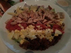 点了经典考伯色拉,88元,里面有烤鸡胸、芝士、牛油果、培根等,内容很丰富,到底是经典啊。两人分分正好。老爸烤牛排三明治,98元,一切二的,正好一人半个,牛排有点老,整体而言不错。健康果昔,38元,要了第一款,里面有蓝莓、猕猴桃,酸酸甜甜的,味道很好。查看更多