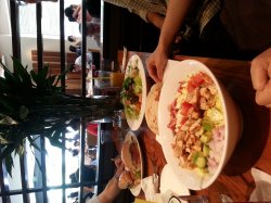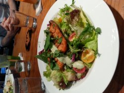 正大一楼的新元素,感觉位置还蛮偏的。公司聚餐所以进去吃了一顿,本人不是很喜欢吃沙拉,我一直觉得是给兔子这种玩意吃的。不过我还是点了份烤三文鱼的沙拉,最后当然没有解决完啦,老实说这家的沙拉做的还可以的,就是我不是很喜欢吃。三文鱼烤过之后就没有生吃的鱼片来的新鲜爽口了。其他同事点的餐我也叫不上来名字,不过我有图~大家可以看图片。上菜速度我觉得不是很快我们等了很久催了好多次才上菜,速度确实很慢。建议吃沙拉配个面包或者其他的能填饱肚子的东西。查看更多