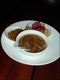 环境还不错,喜欢有些昏暗的灯光,每桌上都有一个蜡烛,但是食物实在是不怎么样啊!又贵又难吃!泰式春卷,感觉很一般,不知道什么东西的拼盘,橄榄味道冲,新鲜芝士真心难吃,蘑菇没味道,只有配的面包能吃吃,芝士通心粉,奶油味道蛮浓的,还行,上面配的鸡胸太老了,海鲜带子贝壳粉里的带子 熟度控制得当 只有环境和服务能加点分,总算还是有点可取之处哈。…查看更多