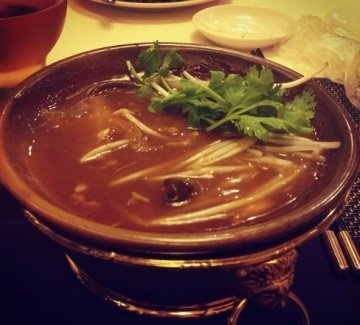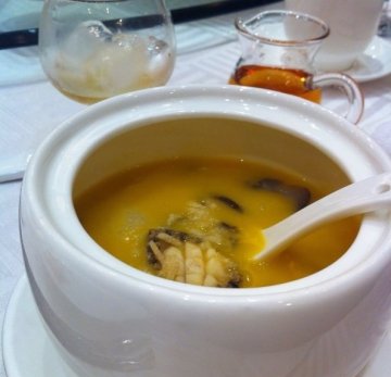 客户请吃饭来过一次。。。。这家店的环境还是非常不错的,很高档。。。。。菜味道很好。。果真一份价钱一份货嘛。。。砂锅鱼翅,这个超赞。。。。一人一份的量很大大,而且里面有完整的一大片排翅。。。。汤汁很浓稠,拌上泰国香米。。。超赞呀。。。。还有烤银鳕鱼也是这里的招牌菜,鱼肉很肥美。。。。看的出食材很新鲜。。。。。很美味。。。味道很赞,就是价钱很贵。。。自己去吃不太舍得。。。