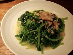 现在新发现的招牌也算打出去了,大半个杭州城的人都知道新发现的菜价廉物美,偶尔也都喜欢来小搓一顿。至于这儿的菜品么,不能说是有亮点,但是胜在原汁原味,也是记忆中的那个味道。记得7、8年前吃的蛋黄鸡翅就一直是这个味儿,蛋黄味儿浓,鸡翅鲜嫩。要说实惠吧,这儿的年糕牛仔骨算是非常实惠了。牛仔骨肉质很嫩滑,算是牛身上最好吃的部位,而且分量也多;年糕比较管饱,搭配红烧牛仔骨也入味,一大盘才不到30的价格,够实惠的。蜜汁藕片算是最传统的杭州凉菜,其实说一句甜品也不为过。造型虽然变了,由传统的切片藕片变成了四四方方的藕块,造型更漂亮,但是味道还是一如既往的好。招牌的烤肉算是新菜,肉是五花肉,肥瘦相间,一层接一层,浇上浓汁,但是却不腻味,不愧是招牌。肉菜点的太多也不是件好事,容易吃起来过于腻味,所以又补了一个蔬菜——上汤菠菜。菠菜很新鲜,味道也好,搭配蛋黄末和切碎的午餐肉,跟烤肉和鸡翅正是完美的搭配。