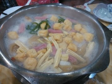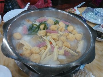 最近天气转冷就想吃些热乎的东西,而新招鲜本地鸡窝他家主打的就是各类火锅了,所以小伙伴就提议去他家吃火锅,其中比较青睐的就是鸡锅了,鸡肉和锅底是分开放的,烧开之后再把鸡肉倒进去,另外再点了羊肉、贡丸、鱼豆腐、海带、年糕等东西,摆得满满的一桌,锅底的味道蛮鲜的,纯粹自然的鲜味,食物煮过之后吃着也颇为鲜美,香而不腻,结完帐后还送了优惠券。