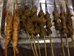 他家在东西快速干道桥下,147、250车站那~门脸有个大大的新浪logo,很萌~4点去的,还没什么人,店员也都在忙活准备晚餐,屋子里有种世界杯的氛围,飘着各国的小国旗~验证的很顺利~上菜也很快~#烤扇贝 这个是招牌菜嘛,很赞~去掉了扇贝的脏东西,大块的扇贝肉留在上面,不像有的是扇贝肉摆上去的。蒜也烤的很入味,油有点多,吃着很香~#烤鸡皮 一串是2大块鸡皮串起来的,一咬连着一大块都下来了,有点不方便,但吃着挺香。放了糖,属于甜口,鸡皮很软,不够焦,但吃着并不腻~#肉筋 肉筋很大个,也是甜口的,也很赞。不会很难咬,也不会塞牙~他家大部分都是甜口的,好在我很喜欢,不爱吃甜的朋友可以提醒下不放糖~#肉串 羊肉串吃的时候不很热了,肉质感觉不错;鸡肉串,个人不爱吃烤的鸡肉串,肉有些硬;#烤虾 烤的微干,微辣口味,很好吃~#秘制麻辣烫 话说刚上的时候看着一点辣椒都没有我还纳闷,这是麻辣烫吗,难道自己放辣椒油。吃了一口才知道,够麻够辣。问了才知道,是用的自制的辣椒水,把辣椒都撇出去了,要不吃着会呛嗓子~果然很细心,果然是秘制。味道也和普通的有区别。不过吃多了会很咸。#烤茄子 这个是最后上的,都有点吃饱了,没吃了。油很大,上面的蒜很香。茄子心还是很软的那种。#拌花菜 老板赠送的,点个赞~ 也是甜口,很解腻。主要是黄瓜和花生米。可能是腐竹有些硬吧,放的比较少。整体感觉很好,推荐烤扇贝~ 希望多推出些优惠活动~…查看更多