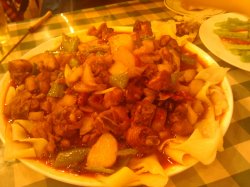 新疆巴州金丝特餐厅,地址位于海淀区皂君庙2号新疆巴州驻京办事处内。传说中的新疆巴州驻京办,肉食动物的好去处。清真餐厅必然的。服务员有从新疆来的,这可从相貌上看出来。装修和大多数新疆馆子一样,虽然这家比较大,但看着也是挺旧的感觉。两个人,点了不少,慢慢说。大盘鸡,明显鸡肉比土豆多阿,真是很实在啊,里面泡的拉条子特别赞,首先就是拉条子好,泡汤也不容易烂,另外就是汤好,拉条子吸收了汤汁,自身也充满了好的味道素菜一道,主要用来解油腻的,点了不少肉菜,这个具有辅助胃口的作用。散子,挺脆的,嘎嘣的那种脆。酸奶,真的是很酸,加了不少糖,这才喝完了。馕包肉,四周一个大馕切成一牙一牙的那种,中间倒上做好的羊肉,就着馕来吃,那味道别提多好了。烤羊肉串,大串真给力,烤得也熟,辣度适中。综合评价:肉食动物集中营。…查看更多