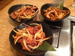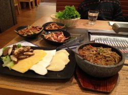这里烤肉的种类不多这次去吃好几种肉都断货了这家没有免费的南瓜粥,没有辣炒年糕生菜,调料都是收费的不过食物的价格比起其他地方还是便宜的肉肉调味不错,适合重口味最爱牛舌,很嫩也很Q接着是鸡翅,腌制得不错月牙骨,鸡胗味道也不错,不过品质有好有坏肥牛石锅拌饭量很足,就是拌饭的酱料是需要另外收费的蔬菜拼盘最喜欢红薯和香菇性价比还不错的烤肉店,离家也蛮近的查看更多