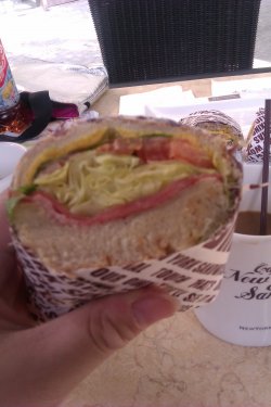 【洛】探店の新约士(古北店)~算是下午茶了 洛洛智久等級42013-10-076 瀏覽 關注 【洛】探店の新约士(古北店)~算是下午茶了~正好去黃金城道,就順便在此下午茶了~看到有點評團的團購,覺得老格算的,又不需要預約,方便隨即就入手了一份~他們家的麵包品種還是極其豐富的!洛入手的是三明治套餐,團購價33元,最高价值53元三明治套餐!浓郁意式风情,招牌三明治,丰富馅料,细腻口感!诱人滋味绵延,精致创意无限!- 三明治(任选1种,最高价值28元) 新约士/烤鸡胸/俱乐部- 饮品(任选1种,最高价值25元) 美式咖啡 冰晶(桔子/柠檬/百香果/芒果/蓝莓) 抹茶冰沙 香草冰沙最終選擇了CLUB SANDWICH&抹茶冰沙,洛是抹茶控嘛總歸選擇抹茶的~古北店的新约士NEWYORK SANDWICH是開在黄金城道776号的776购物商城2L,倒還是蠻好找的,店面也十分乾淨明亮,只是邊上的小店好多都在裝潢很是嘈雜了些!入餐廳後,就驗證密碼,點餐~大概等了N分鐘,CLUB SANDWICH&抹茶冰沙一起上桌了~俱乐部三明治一切為二了,食用起來更加方便了,麵包夾雜著有生菜,cheese片,bacon,番茄等等,荤素搭配著,口感還是蠻清新的~而且麵包也是烤的脆脆的香香的,味道蠻不錯的~抹茶冰沙,口感稍許淡了些,冰粒略多了些,比較淡悠悠的口感,味道尚可~總體來說團購價還是蠻實惠的~店員的態度也還可以,都是MM~店內也有wifi提供的,是776购物商城統一的網絡~只是不太穩定容易掉線~…查看更多+ 7以上食評乃用戶個人意見 , 並不代表OpenRice之觀點。讚好分享【洛】探店の新约士(古北店)~算是下午茶了 新约士 https://s.openrice.com/KtbT100f9q700檢舉 愿是 有点像赛百味。2013-10-08 回覆 向日葵520 确实像赛百味2013-10-08 回覆 張貼 評分4味道4環境4服務4衛生4抵食