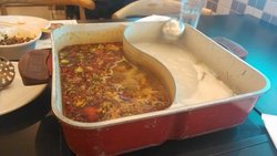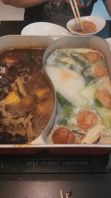 这家店就在朝阳大悦城7楼,虽然是火锅店,但是他家的环境还不错,空调很足。锅底选的鸳鸯的,吃肉涮辣锅,吃菜涮清汤,觉得搭配的不错。他家的鲜牛肉非常好吃,29元一份,是鲜肉切的,很薄一片,在辣锅里烫一烫基本就熟了。