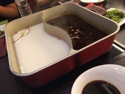 华宇时尚购物中心4层的一家鱼火锅店,环境还是挺不错的,起码很干净,吃完也不会一身味道。点了鸳鸯锅底,儿子可以在白汤里涮点肉,还可以涮点青菜。他家的红汤锅底辣味一般,点了特辣也就跟四川火锅中辣差不多,梭边鱼一定要放在红汤里先煮,辣味可以覆盖鱼的土腥味,梭边鱼没什么刺,肉质细嫩,特别好吃,而且鱼肉脂肪含量低,解馋又不会发胖。3人消费230元。查看更多