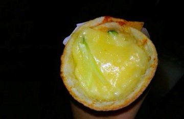 时刻家把披萨做成了手卷状,最经典的依然是榴莲口味,最底下是浓稠的土豆泥,中间很大的一块是新鲜的榴莲,上面一层是超多的芝士,拉丝很长,一个手卷就能当做一顿午餐了,做逛街的零食也不错。
