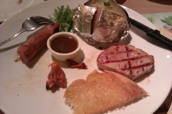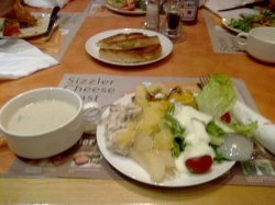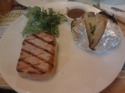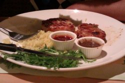 微美食中了100块钱餐券,周末抽空和老公去吃的,去之前看人均70多,心想也就加个50左右差不多了。。。。没想到,败家老公点了个100多的套餐,结果我俩超出预算,又加了一百多。。。。我点的猪排,味道还不错,挺嫩的,套餐里面要的土豆,太大了,吃不下,基本都剩下了。。。。早知道要薯条的。。。酱料是黑胡椒味的,也不错,配着肉肉吃刚刚好。套餐里包含自助沙拉,还不错,喜欢吃黄桃。汤什么的也可以自己去取,每个都尝了尝,喜欢奶油蘑菇汤。LG点的套餐里面就比我多一根肠,没觉得好吃。。。:(不值服务人员态度挺好的,有个大姐挺热情的,问我们吃好了没,感觉怎么样。周三去好像有半价吧,下次等半价再去了…查看更多