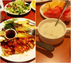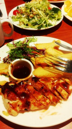 味道不错的牛排鸡排 Amberwl等級32014-03-0530 瀏覽 關注 晚上和朋友们聚会选的离公司近的这家店,点了三份不一样的牛排和鸡排,炭烧鸡排味道不错,配的薯条很大根,而且沙拉吧是自助的,可以选择的水果和蔬菜也很多,莎拉酱种类也很多,汤品也是自助的,我喝的奶油蘑菇汤,还不错,朋友喝的酸辣汤,自助的小食还有虾片一类的东西,人不是很多,但服务员服务态度不错。…查看更多以上食評乃用戶個人意見 , 並不代表OpenRice之觀點。讚好分享味道不错的牛排鸡排 时时乐 https://s.openrice.com/KtbT1m0sFG900檢舉 張貼 評分5味道5環境5服務5衛生4抵食推介美食炭烧鸡排¥90蘑菇汤和鸡排自助沙拉和小面包炭烧鸡排 沙拉吧用餐日期2014-02-28人均消費¥100