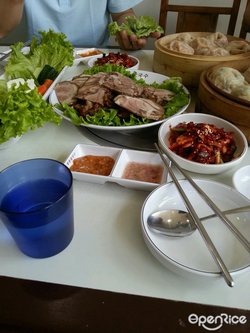 说起来之前一直路过这里,但是大部分人都说这里不好吃又不实惠,所以从来没有进去过。前一阵正好有机会跟人蹭饭,BGer说要来这家吃,于是就屁颠颠的来这里吃饭饭了。门脸其实小小的,里面的空间也比较小,不过有两层,二层的话总共有不到10桌的空间。我们坐在二层。菜单的内容非常少,基本上只有肉、刀削面和饺子,价格也确实是跟实惠基本不挂钩。。。BGer点了猪蹄肉、刀削面和特色的饺子。说实话,猪蹄肉真的超好吃!!!!!!这种吃法也很赞,完全没有骨头,肉被切片了,沾着酱卷着生菜吃,感觉还挺不错的。不过这基本上也就是这里最好吃的菜了吧。关于刀削面,虽然说这家名字就叫刀削面,但是这里的刀削面还真的是非常的诡异,可能是韩国人领会的刀削面和中国的刀削面不是一个玩意?!这里的刀削面,感觉就是用刀剁出来的面条,有点类似手擀面但是又没有手擀面好吃的感觉。另外这个汤就更奇葩了,像是涮锅水!!!!绝对是涮锅水!!!!!基本没有味道,比泡面还不如!!!!!!也许韩国人的味觉比较奇怪吧。饺子上来的时候我就震惊了!!!!真的震惊了!!!!一个大概有一个包子那么大!!!!特别大!!!!!那能叫饺子嚒!!!!是包子好吧!!!!泡菜味的还不错,反正怎么着都比那个面条好吃。话说BGer就是超爱这家的饺子啊。。。个人觉得还不如去食堂吃大包子。。。总之这家还是个比较贵的店,如果说还有机会来的话,我只会吃那个猪蹄,其他的不考虑。…查看更多