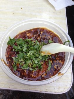 我吃过这家好几次了,但是竟然都不是吃的酸辣粉.第一次吃到他家牛肉粉我就爱上了.其实我是很不喜欢在外面吃牛肉的人.量少不说,肉的品质也很一般.但是他家牛肉粉,汤头又鲜,牛肉虽然量不算多,但也绝对不少.辣椒够辣.一碗粉吃下去,再喝点牛肉汤,简直太舒服了.可惜就是这家的人实在太多了.环境也太拥挤了.经常没位置.后来渐渐就不去吃了,除非打包.