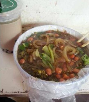 这家易记酸辣粉开业的时候曾经火过一阵,等大家都尝试过之后,就一般般了。有时候路过,觉得嘴里没味需要激情的话,会来一碗,搭配隔壁的奶茶,美啊!酸辣粉用的是苕粉,比较粗的那种,里面的花生米可以要求多放,味道十足,容易上火。