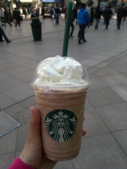 上海现在星巴克基本上属于到处都是啊,比起来福士那家点,这家我觉得做的味道更加浓郁,貌似咖啡加的比较多,而且排队还稍微好点天气是越来越热了,最喜欢这个季节吃他们的星冰乐系列了,比起香草星冰乐,在这个我特别觉得容易困乏的时节还是吃吃带咖啡的摩卡星冰乐不错啊摩卡星冰乐就是用摩卡咖啡加上打碎了的沙冰再最后上面加上一层奶油,味道不错啊,主要是绝对够冰凉啊,这个天气握着都舒服啊,再加上好喝的摩卡口味,超级喜欢查看更多