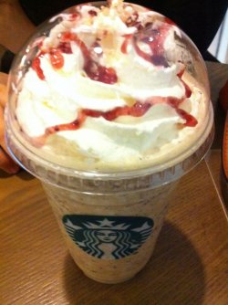 星巴克感觉会喝上瘾啊,说时候价格略贵啊,买一送一比较能接受,不过饮料的味道都很好,很喜欢,特别是冬天来了,新品都是我的菜太妃榛果拿铁,咖啡味比较重,不怎么填,但是很香蔓越莓白巧克力摩卡,我喝的是星冰乐,上面一圈红色的酱好有冬天的气氛啊,巧克力味相对重一些,甜味也重一点,但是依然好喝