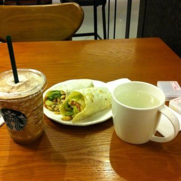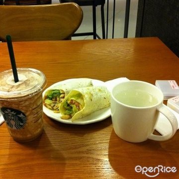 星巴克咖啡是我喜欢的咖啡店之一,正好周末去东方医院检查身体,身体检查好后决定来这里吃点点心。这家店不是很大,店内客人还满多的,服务员有点都忙不过来了。个人比较喜欢它家的鸡肉卷,现点现做,非常新鲜,鸡肉卷的外皮有嚼劲,里面包裹了新鲜的生菜和色拉酱,再配合上鸡肉的鲜嫩后使得整个鸡肉卷味道非常美味好吃。