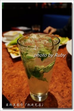 是个工作日的晚上一行2人去的,团购+单点。话说,这家星期五餐厅真是知道的很。。。早,怎么也得十多年了,都忘了是怎么知道的了,就一直没有去过。那天我们大概晚上6点半到的他家,他家有2层,1层有个吧台和一些餐位,我们到的时候吧台那片坐满了客人,然后上的2层,刚到的时候2层客人没有很多,服务生给我们领到一个好像是预留的位置,不是我们自己选的,其实其他位置也没有坐满。吃饭过程中,他家陆陆续续上了不少客人,但也是没有坐满的,不少空位。环境还是不错的,美式的风格,餐位比较宽敞,光线也不错,不是暗的那种。吃的方面,团了个158米的嫩肩牛排单人套餐,然后又单点了1个汉堡和1份小食拼盘,之前有想过他家美式风格量会比较大,但还是有点误判,菜一份一份的上,没上完就知道点多了。菜品的味道和食材的质量,好的有些出乎我的意料,每份菜品我都挺喜欢的,很爱他家每种菜品配的各种酱。服务方面,除了预约时感觉有些象先把客人诓来再说,店内的服务是不错的,特别一个女的服务生,好像是领班啥的,不太懂,服务真好。总的来说,这次探店挺成功的,他家属于我以后还想再去的店,他家菜品没有很多,打算以后都尝一尝。摩西多(不含酒精),原价58米。就是莫吉托(Mojito),好多冰。网上看了配方,就是要加冰的,可能要的就是那种冰刺刺的口感。尝了下,青柠的酸味比较重,没有怎么甜,加上冰块的凉和苏打水的激口,口感还是挺刺激清爽的,还有微微浅浅丝丝的薄荷味,挺好喝的。三文鱼沙拉,原价65米。量真大。三文鱼是熟的,吃着就是熟三文鱼的口感,肉质比较紧。料除了生菜,还有煮鸡蛋、洋葱、圣女果,种类是所见即所有,配上我爱的千岛酱,不错。美味三奇鸡,98米。量可真大,搭配上味道,这个价格个人觉的还挺值得的。1、鸡肉酥饼,是这餐里我觉的最好吃的,饼是薄的口感软的,里面的内容好象是鸡胸肉,量是可以吃到并会感觉到在吃肉肉的,关键是酱料,很足,而且是我喜欢的味道,略带些小甜口,但又不是纯甜,也不知道是啥酱,除了酱料,还有些青椒碎啊辣椒碎啊啥的小配料,也是有调味的,有种带着蔬菜味酱料的味道,两种味道混搭在一起,佐着鸡肉+薄饼,一口吃下去,O!真好吃,好喜欢这个鸡肉酥饼。2、辣鸡翅,味道挺特别,不像是常会吃的辣味。它的辣味是带着新鲜辣椒弄碎做的酱的那种味道,鸡翅上面还裹着很细的辣椒碎的糊糊,吃起来辣的还挺独特,还挺喜欢这种味道的,鸡翅挺入味的,味道够足,我喜欢。3、鸡柳棒,挺粗的,外面炸的很酥,里面纯肉,吃着很有肉感,本身没有什么味,沾着什么料就什么味,我适合我这种喜欢肉肉又不喜欢吐骨的人吃。4、新鲜芹菜段,芹菜段好粗,真是很新鲜,脆脆的,很juice,吃着感觉很健康。和菜市场里常买的那种芹菜是不一样的。5、配的3种酱,蓝芝士酱、蜂蜜芥末酱和神仙酱。(1)蓝芝士酱,有些怪,是一种发酵过的东东的味,据说在芝士中是更有营养价格也高端的一种芝士,但我和朋友都吃不惯。(2)蜂蜜芥末酱,怎么这么好吃,看菜单才知道是蜂蜜芥末,怪不得,吃subway我最常要的酱就是蜜汁芥末了,不过感觉他家的蜂蜜芥末和subway的蜜汁芥末还是略有些不一样的,但同样是我的菜,这点是肯定的。(3)神仙酱,感觉是新鲜辣椒弄碎做成的一种辣椒酱,没有很辣,是一种熟的具有蔬菜感的咸辣味道,朋友比较喜欢这个酱。嫩肩牛排,原价165米。很厚的一片牛排,吃起来感觉肉质很好,不会咬不动,也不是很嫩的那种,挺有咬劲,但不会怎么费牙。就是吃到最后,可能有些凉了,就咬起来有些费劲了,我个人认为他家的牛排才可以算的上是真正的牛排,我吃过的一些比较平价的牛排、台式的牛排,还有一些西餐店的牛排,和他家牛排一比,那都不能叫牛排了感觉。配的酱汁里面有成粒的花椒,好像是腌过的,味道已经不是直接的花椒味了,不怎么喜欢这种花椒的味道。酱料的味道还不错,咸口的,里面还有些分辨不太出来的一些香料的味道,就是里面的花椒粒太多了,不太容易挑出去,有些影响了味道。星期五汉堡,68米。内容有两大片可以吃出肉感的培根、牛肉饼、番茄圈和酸黄瓜,汉堡很厚,味道中规中矩。配的酥脆洋葱圈里面真是一个洋葱圈,外面裹的糊炸的真酥脆,洋葱圈还是小脆口的,但是已经褪去辛辣感,只有种甜度感在了,第一次觉的炸洋葱圈还挺好吃的。配的薯条比大M的粗,吃着还不错,他家番茄酱挺好吃,不是偏咸、偏甜或偏酸的,是咸甜酸搭配的,很合我的口味。摩卡咖啡冰淇淋派,45米。当月过生日送的,店家真是大气,不纠结一定是生日当天,只要是生日当月就行,这种原则很适合我这种真实生日和身份证生日有出入的人。上面的冰淇淋,也没太分辨出是啥味来,没有很甜,还不错。下面的派,一半深色一半浅色,味道不太一样,也说不出是啥味,就摩卡咖啡味吧,凉凉的甜甜的,对我来说,还是挺甜的,吃不了太凉的,朋友主吃,感觉还挺好的。查看更多
