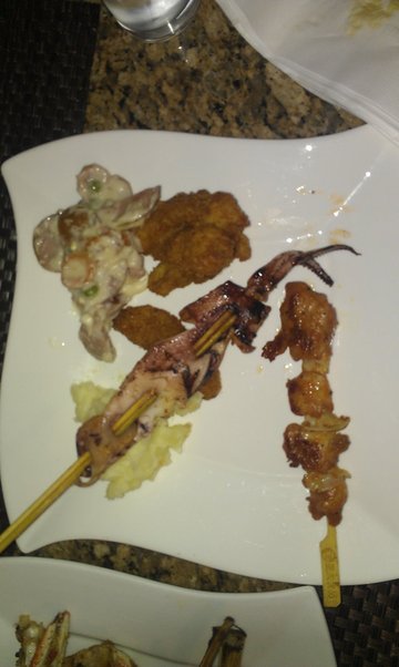 春晓西餐的性价比真心的赞,团购经常有的,而且并没有因为是团购而在食物的质量和品种上面有任何的下降,我是挺喜欢去的。这里的鱼生就是挺多的,虽然无限量的,但是每次师傅切的都是挺薄的,而且最多五片,要经常去拿才行。三文鱼挺新鲜的,口感很爽脆。这里还有八爪鱼,吃起来柔柔韧韧的,不过没啥味道,要蘸酱油才行。黄油焗虾是熟食里面我的最爱,黄油是混合了一些土豆泥的,不说虾,光是这土豆泥都很好吃了,何况虾壳已经去掉了,爽爽的虾仁肉啊。