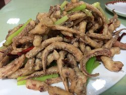 5点就到店的节奏,华丽丽的各种有座位,上餐非常快,不过明显感觉味道不如从前,不知道是不是因为氛围和心情的原因呢。简单的点了两个菜,一个是经典曲目干煸鱿鱼须,36米。炸的外壳酥脆的鱿鱼须,鱿鱼还是软软QQ的,非常好嚼,咸中带甜,香酥美味。有点酥炸大鱿鱼的赶脚呢~配菜芹菜稍有些老,点缀的华丽丽配角。另外一道是保留曲目,八珍豆腐,32米。价格实惠,量也真心很大,不过感觉海鲜类都是发制的,口感并不好,而且明显有化学制品的味道。因为调味比较淡,食材本身的味道会凸显出来,不够新鲜,缺点暴露无遗。豆腐炸的酥脆,配各种海鲜制品味道倒是很鲜美~要了两碗白饭,两人共消费72米,价格实惠,比较适合同事家人聚餐。单间有最低消费500米起,大厅环境略显拥挤,服务生态度还成。