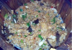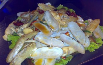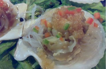 招牌酥皮虾,果然是招牌,虾被炸制得酥酥的,但酥的仅是外皮,里面的肉还是保持了原味,鲜美,加上外面酥皮的油香,的确是一道美味,所以很快就被干掉了。下一道菜:干煸鱿鱼须,厨师借鉴了干煸里脊的做法,将鱿鱼巧妙揉入其中,与上次天下盐改良的干煸银鳕鱼有异曲同工之妙,推荐,里面的鱿鱼被挑的一个不剩。蒜蓉粉丝蒸扇贝是今天最大的惊喜,很大的扇贝配以蒜蓉蒸制,吃在嘴里,厚实的扇贝咬一口,里面的汁便渗出来,鲜美无比,可惜每人只吃了一个,明显不过瘾,哈哈。荷塘小炒,离我比较远,我没有尝到,不过从色和香上已经可见一斑了。辣炒花蛤,今天的花蛤稍微有些瘦,但这道菜还是很出彩,花蛤的鲜配上辣,不好吃就奇怪了。海鲜毛血旺,一大盆,里面的内容非常丰富,有蟹棒,鳝段、血、海肠、鱿鱼、扇贝等等,毛血旺真是个蕴藏着宝贝的菜,每捞一次,总有惊喜在等着你,哈哈。清蒸鲈鱼,一条鲈鱼,清蒸,一直认为清蒸的鱼很考验料的水平和厨师的手艺,因为没有多少调料掩盖,首先鱼必须是很新鲜的,否则此菜必然失败。鱼是相当新鲜,并且在厨师的技法下,保持了鱼的鲜美,同时也去掉了鱼中不好的一些味道,赞!!滑蛋虾仁饭,里面的虾仁wonderful!勾芡勾得非常粘稠,浇在米饭上,米饭的清香配以虾的鲜美,不愧是道“美丽”的主食!海鲜乌冬面,由于其他海鲜太好吃了,这个面到最后我也没有动,有点遗憾哈。木桶饭,有几位竟然吃出咖啡的味道,我觉得ms是大麦的味道或者是木桶的木香吧,难道真的会放咖啡??个人认为:不会!最后一道菜是海鲜豆腐汤,味道鲜美,里面的花蛤我吃了好多,喜欢。