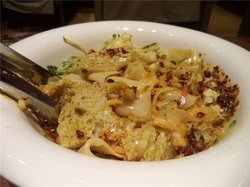 吃山西菜肯定少不了羊肉,他家的羊腿棒个人感觉性价比好低啊,骨头压秤,上面的肉却不多。羊肉串我比较喜欢,肥瘦相间,肥肉的油都渗到瘦肉里,吃起来瘦的不觉得老,肥的也不腻。烤包子肯定要点,价格不贵,个头还大,趁热吃,底子脆脆的,里面的肉也不少。吃完了又打包几个回去做早饭。凉皮也蛮赞,口感韧韧的,连里面的配菜都被我吃完了。最喜欢的放最后:酸奶。他家的酸奶本味很算,很醇厚,不像超市货甜的无法下口。配上蜜汁,哇,我被融化了