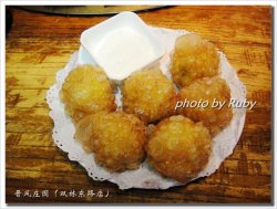 晋风庄园 judyzh等級42013-01-112 瀏覽 關注 这顿算是一家四口的元旦聚餐了,选在了家附近的【晋风庄园】,一家山西风味餐厅,面积不小,装修风格也颇有民族气息。操作间都是落地大玻璃,远远的就能看到一大锅一大锅的东东,很招人食欲。进餐厅的第一感觉还是不错的,可后来服务员都比较木讷死板,上菜速度虽快,但味道都一般,面食做的倒是不错。【公社招待饭】46元名字好奇怪,我们是看那一大锅点的,没看菜单,问服务员那是什么,服务员说了好几遍,由于声音太小,我只听清什么招待饭,当时心里还琢磨呢,招待饭?啥意思,还不给我吃么?哈哈哈哈!里面有大丸子、鸡蛋等东东,有点儿卤水的意思,味道一般,没什么特色。【晋商香酥鸭】68元/半套虽不及晋阳的好吃,但也算不错了,外焦里嫩,又酥又香。【山西过油肉】38元跟晋阳的味道差不多,口味微酸,肉质嫩滑,下饭的好菜。【满汉小炒肉】48元肉肉有点儿柴,圆圆的是腰子,味道不咋地,我不喜欢。【碳烤羊肉串】7元/串大串儿不错,肉很棒,劲道有嚼头,烤得也入味。【沙葱羊肉饼】23元LG大爱的沙葱,据说内蒙那边的超好吃,他家这个除了沙葱还放了大葱,有点儿画蛇添足了。羊肉味很浓,我觉得有点儿膻,老妈和LG觉得好吃。【窑洞烤馍】6元大个儿的烤馒头,外形超可爱。外表烤的酥脆,里面绵软,口味微甜,越嚼越香。【黄米炸糕】15元/半打(6个)豆沙馅的,馅给的很足,吃多了有点儿腻。【小米南瓜粥】3元每人免费一碗,服务员比较死心眼,想多喝一碗都不给,最后说再喝就要收费了。这点商家做的有点儿小家子气了,就说免费,能喝几碗啊?…查看更多以上食評乃用戶個人意見 , 並不代表OpenRice之觀點。讚好分享晋风庄园 晋风庄园 https://s.openrice.com/KtbT1m0wzz0m0檢舉 張貼 評分3味道4環境2服務4衛生3抵食推介美食碳烤羊肉串¥7窑洞烤馍¥6碳烤羊肉串,窑洞烤馍用餐日期2012-12-30人均消費¥70 (晚餐)