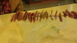 有友价格现在也是飞速上涨,有时候做活动会有折扣销售,不过很少很少。我和闺蜜喜欢吃他家的郡子,中间夹着芹菜,野山椒,味道就是有友泡凤爪的味道,一串四块五有些贵,但是不得不说很好吃,一点腥味儿也没有,赞一个!
