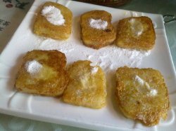 外形很像上海的传统点心----糍饭糕,但是上面洒了些白糖粉,磨的很细腻,好象白雪一样。糍粑炸成金黄色,外层很脆的样子。咬开后,里面做的比较细腻、软和,才发现表皮是薄薄的一层。沾上白糖吃,甜度一点点而已,不会感觉很腻。因为加了蛋,整体吃起来松松、香香的,外皮炸的不容易焦老。这个可以在最后当主食的点心。查看更多