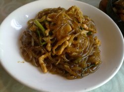 酸菜炒粉条,在炎热的天气里吃来,还是感觉比较开胃、爽口的。除了酸菜,里面还有肉丝。肉丝切的还是比较大的、比较完整的,不是太碎、糊烂的那种。粉条呈半透明状,咬起来Q弹有劲道,入口很滑。整道菜的酸度不是太强烈的,所以入口还是比较舒服的。查看更多