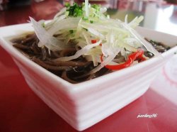 酸辣厥根粉 是用厥根的粉做的,呵呵,吃起来可有点韩国冷面的感觉,滑滑的、酸酸的,上面还洒点乌笋丝,很爽口。油醋汁蔬菜色拉 味道拌的很不错的蔬菜色拉,很好吃。老坛子泡菜 我以为泡菜都是腌过的,一眼看上去就看的出,颜色厌厌的,可他家的却看不出,色彩新鲜,脆脆的,里面有鸡爪、鸡冠等等很多东西。馋嘴蛙 很好吃的,肉质有弹性,又很入味,可惜下手慢了点,才吃了一小块就没有了,呵呵。麻辣鸭头 这是店家极力宣传的招牌菜哦,一开始,他们都说这是最辣的一道菜,吓得我都不敢吃,后来,看他们一个个呀,吃的是津津有味,口水啊,终于忍不住偶也尝了一个,好香哟,麻麻的,鲜鲜的,有点辣,但还是很香,说不清的很多种滋味,好,不错!为了它,偶打了5个喷嚏,哈哈哈。清蒸娃娃菜 听上去很一般,但其实还是满有特色的,那造型,那香香的口味,让我想起了蒜蓉蒸扇贝,好吃,去掉了根部,吃起来口感更好,偶很喜欢吃的。查看更多