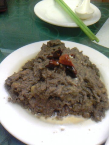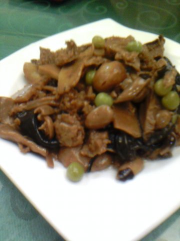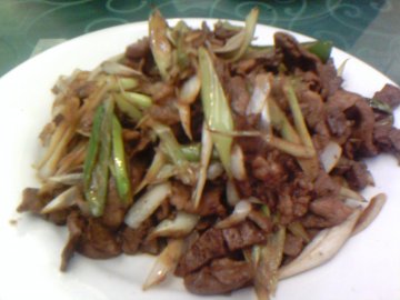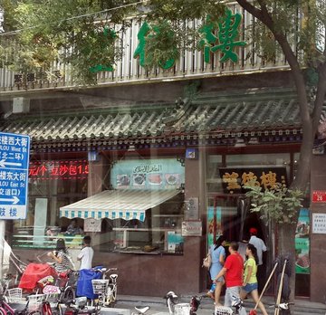 他家在地安门外大街26号,临近鼓楼挺有名的一家清真馆子,来这里停车是个问题,老字号国营饭馆,服务一般菜做的相当棒,摆盘再讲究点就更好了,相当有特色的一点是可以进后厨参观最喜欢,醋溜木犀,微酸,醋香浓郁,肉片鲜嫩,没有膻味,小份的量也不小素什锦,料真丰富,烤麸、木耳、香菇、豌豆、花生,咸口,不象四喜烤麸似的,甜味那么重爆三样,怎么只有两样呢,只有羊肉、羊肝另一样哪儿去了,味道还行麻豆腐,卖相忒差了,灰忽忽的一团,不过味道真没的说,羊油炒的还能吃到油渣