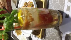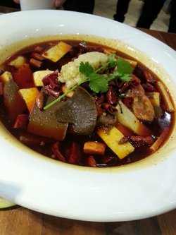 周末和一朋友一起来到了这家慕名已久的店,我们晚上7点左右到的,每次逛街路过的时候都会看见有好多人在等位,我们等了大约10多分钟就进去了。我们两个人点了臭豆腐,榴莲球,三杯鸡,蟹黄豆腐,还有一个南瓜小排,点菜的时候觉得没多少,可是菜都上来之后发现真是有点儿多。我俩都很爱吃臭豆腐,不过他家的我觉得味道有点淡,不是很好吃;榴莲球外面脆脆的榴莲的味道也很浓郁,很好吃;那个三杯鸡和南瓜小排都是分量不太大的,我俩吃了几口感觉还行,南瓜很面(本人不爱吃排骨,排骨就不说了),我俩实在是撑的不行了最后就打包了;个人最喜欢的就是那个蟹黄豆腐了,豆腐嫩嫩滑滑的特别好吃。还有一点值得说一下,如果在他家下完单等菜时间如果超过半小时那点的相应的菜就会送给顾客。我和友人分别点了一杯玉米汁和火辣辣的吻,她的很快就上来了,我的玉米汁催了好多次都没上来,后来我的玉米汁上来后果然超时了,嘿嘿,店家也果然免了我这杯玉米汁的单。所以大家去他家吃饭不用担心等菜时间太长,因为可以白吃查看更多