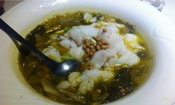 这是家湘菜馆,他家湘菜做得挺正宗的。点了剁椒鱼头,他家做的是鸳鸯鱼头,青红剁椒很下饭,鱼头肉也比较鲜,分量也很足,挺大的一盘。辣子猪手,味道也可以,就是辣子比较多,猪手比较少。还有爆肥牛,是用香菜做的,口味很清新,牛肉不老不嫩,口感正好。最后还点了疙瘩汤,五颜六色,很有食欲。吃完辣的菜,喝一碗汤,胃里暖和又舒服。总体印象挺好的。查看更多
