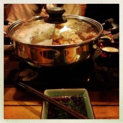 去过一次就知道怎么找了,但是没去过的,却是不好找哦,我第一次去就找了好久呢,哈哈奥体、东门对面有个小区,走小区侧门进去就能看到,但是外面没有招牌啊!!店主如果能重新做个醒目招牌就好了,哈哈!旧招牌一点都不明显啊!店面还行,不是特别大,桌子有点多,感觉又点小挤,但是还算坐得下,能接受~猪蹄火锅感觉有点想豆捞,我点的是木瓜猪蹄锅,猪蹄火候很久的样子,炖的很烂很滑腻,感觉真棒!!加上木瓜真是超丰胸哦!!而且一点都不油腻,常吃也不怕长肉肉啦!猪蹄里的胶原蛋白很多额,吃了皮肤好好!猪蹄啃起来,入口即化,软糯而不肥腻,真的很不错,还叫了其他的素菜,烫一烫吃,一餐正好,不油不腻,非常可口!服务态度什么的都挺好的,点了好多,服务员还说我们可能吃不完,不过提供打包,哈哈总的来说除了不太好找,味道什么都没的说,吃得饱,还不长肥,很开心!!对了,老板好像养了只黑猫,那叫一个油光水滑,猪蹄吃多了咩?!哈哈…查看更多