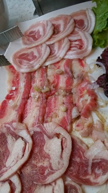 中午店内人不多,提前有订位过,实际上毫无必要。选了靠窗的沙发,一上来就送了好多小菜,吃着味道也不错。就是中午服务员人数少得可怜,不过服务还是挺不错的,点单的时候会提醒量的多少,吃的期间换盘也很勤快,总之给人印象还是挺好的。烤鳗鱼,特别好吃,包在海苔里,一口全入嘴,别提有多赞了,可惜一份量不是很多海鲜葱饼,馅料很丰富,就是配的蘸料淡而无味,烤肉配的调料很赞。南瓜粥,真心好喝,感觉更像稠稠的南瓜汁,而且给的量不像别的地方就一点,还是挺多的,一口气就喝完了,原本还想再要一碗,后来考虑到还要吃肉神马的,还是悠着点。牛里脊肉,因为点单的时候是看图片觉得还可以,就点了,结果和图片差的有点远啊,结果这盘牛肉就这么被剩最多,好老啊。雪花牛肉,这个牛肉真心好吃,考完后也嫩嫩的,估计调味过的关系,带点甜味,汁水也挺多。…查看更多