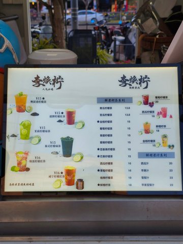 李煥檸手打鮮果檸茶 (龍華星河iCO) (深圳) 網址: https://s.openrice.com/KtbS0W03tc400 地址: 深圳龍華區清湖東環二路8號星河iCO L1層 電話: +86 13751116587