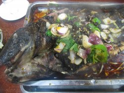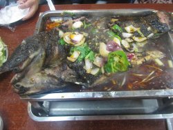 就是冲着他们家的烤鱼去的,听朋友说他家的生意很火,所以就想去尝尝,特意选择了下午一点多去吃的好在人不怎么多至少还有位置,点了条鲶鱼三斤多豆豉微辣味的,刚开始吃时觉得味道还不错,看上去蛮辣的其实倒不怎么辣,可吃到后面就觉得太油腻。查看更多