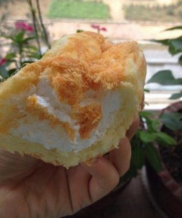 杯子和糖的面包都是店里自制的,所以产量不高,品种倒是不少。有时候晚上有特价活动,但我一次都没赶上过,汗啊。喜欢这里的肉松奶油卷,奶油很泡,而且一点不腻不甜,肉松给的也很丰富。