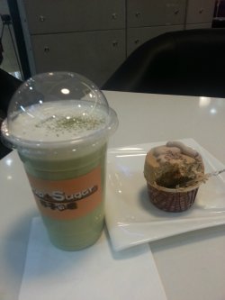 ATM潮流百货新开了一家: 杯子和糖,店面比较宽敞,位置也很多装修精简明快,很适合朋友小聚,聊聊天,度过一个悠闲的下午茶时间,如果再有WIFI就好了我点了一个星座蛋糕杯,咖啡味道的,有点略苦,蛋糕整体来说比较松软水我点的是抹茶海盐奶霜!奶霜是一层像泡沫一样的,质地很细软有点咸有点甜,比较奇怪的味道!总之,那个味道我也说不出来,我不太能接受。