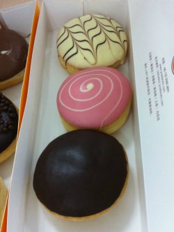最爱甜甜圈的我,逐渐对老牌的甜甜圈,如美式唐纳滋、多拿滋之类的感到腻味的时候。来自印尼的甜品世家杰酷横空出世了,第一次接触它由于它就在我天天经过的日月光而且又有团购,只要19.9六个甜甜圈。我喜欢它家所有有内馅的品种,为花生,花生内心,提拉米苏,鲜奶内心,甜甜圈面皮包着丰富多种的内馅一口下去那个是超级满足呀。。。杰酷,さらに見る